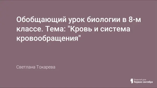 Обобщающий урок биологии в 8-м классе. Тема: "Кровь и система кровообращения"
