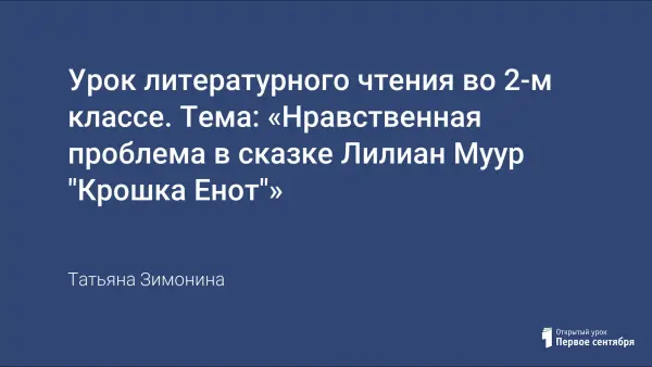 На уроке литературного чтения второклассники учатся выявлять нравственную проблему сказки Л. Муура «Крошка Енот». Урок проводится с использованием ИКТ.
