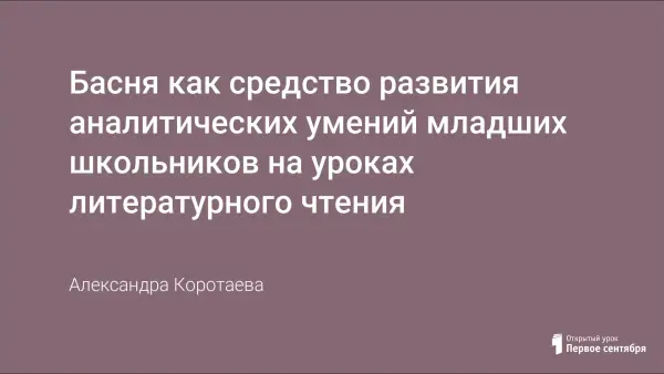 С помощью басни развиваются аналитические умения, т.е. она помогает развивать осмысление своего поведения и других, выявлять основное в ситуациях, формировать личное отношение к произведению и поступкам. Учителю важно умело преподносить детям произведения этого жанра, так как это будет являться фундаментом формирования нравственности и эстетики обучающегося.