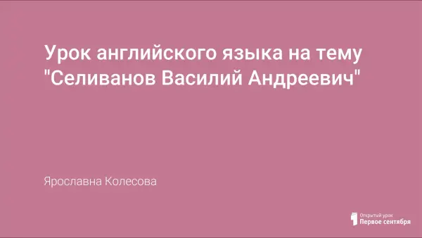 Данная статья о художнике Селиванове Василии Андреевиче, может быть использована на уроках английского языка по теме «Famous People». Статья приводится с биографическими сведениями, содержит отзывы коллег и учеников. Так же показаны наиболее известные работы художника с названиями.