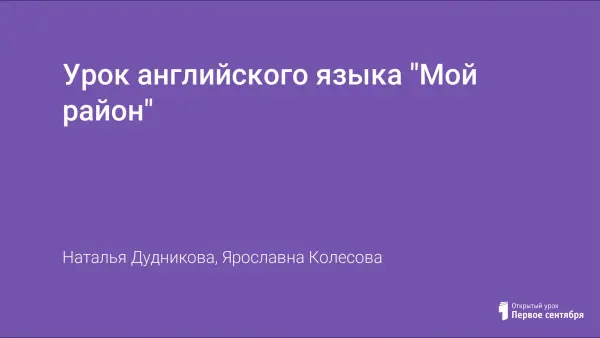 Урок английского языка "Мой район" разработан с учетом регионального компонента. Данный урок может быть проведен в 9-м классе, при изучении темы второго модуля "Life and Living", учебник Spotlight-9. Цель урока - развитие мотивации и интереса к изучению истории района, в котором проживают обучающиеся.
