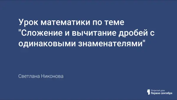 Урок направлен на совершенствование навыков выполнения сложения и вычитания дробей с одинаковыми знаменателями, применение этих навыков при решении уравнений и текстовых задач. При подведении каждого этапа урока проводятся различные виды контроля. При проведении урока используется тестирование как элемент подготовки к ГИА.