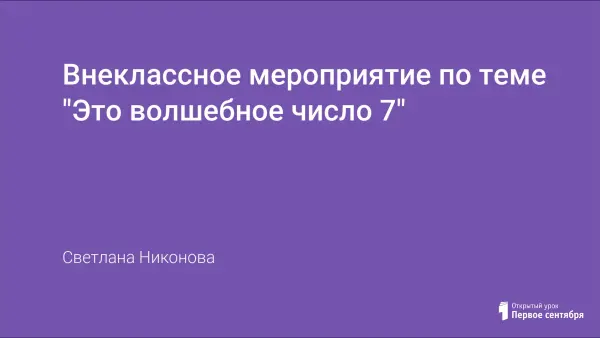 Число 7 широко использовалось у многих народов мира в истории, религии, природных явлениях. Русский народ сложил множество пословиц и поговорок, связанных с числом 7, которое употребляли в качестве понятия "много". Маленькие дети очень рано знакомятся с числом 7, читают сказки разных народов мира. Во многих странах мира арифметические задачи с числом 7 очень похожи.
