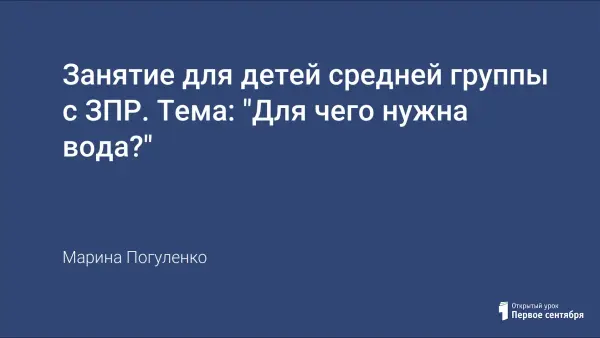 Организация проектной деятельности с детьми средней группы с задержкой психического развития. Проект направлен на формирование у детей представлений о воде, ее свойствах, ее роли в жизни всего живого. Совместная деятельность детей, педагогов и родителей.
