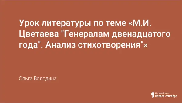 Урок знакомит учащихся с биографией и творчеством М.И.Цветаевой. Так же продолжается изучение темы героического прошлого России.