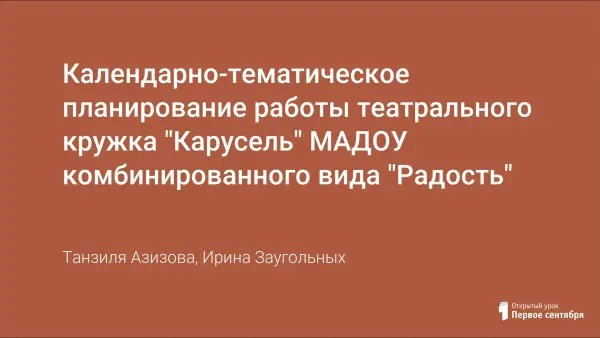 Календарно-тематическое планирование работы театрального кружка "Карусель" МАДОУ комбинированного вида "Радость"