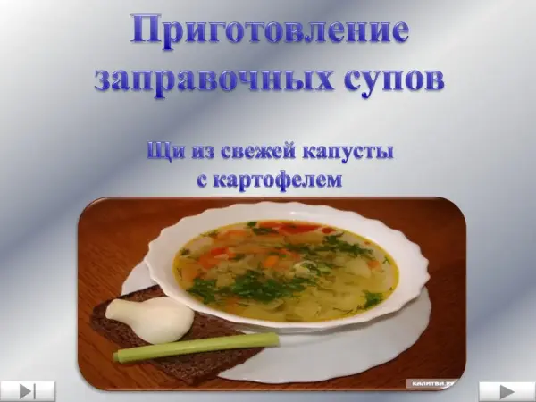 Урок закрепляет процесс приготовления щей из свежей капусты, правила подачи и т. д.