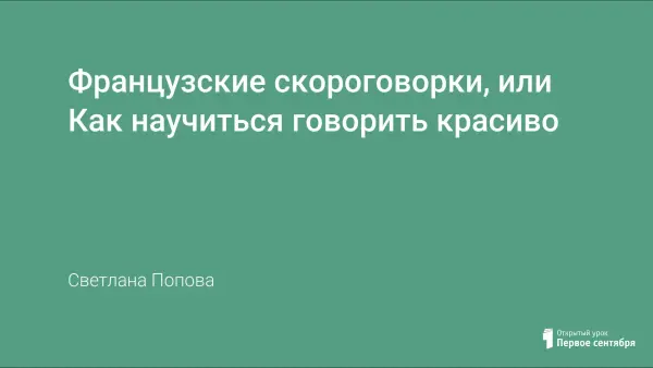 Чтобы стать актером, диктором на радио, политиком, рекламным агентом, учителем, менеджером, телеведущим, певцом, экскурсоводом и т.д., публичных профессий множество, надо иметь красивую речь и четкую дикцию. Скороговорки - это самый простой способ достижения четкости речи. Работа с французскими скороговорками на уроках французского языка позволяет улучшить дикцию учеников, совершенствует произношение, развивает фонематический слух. Кроме того, эту работу можно сделать веселой и интересной и в любом возрасте учащиеся занимаются этим с удовольствием.