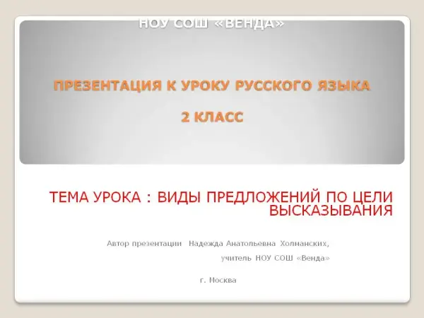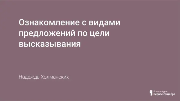 Предложенный урок русского языка по теме «Ознакомление с видами предложений по цели высказывания» может быть проведен по любой программе и любому учебнику русского языка. При проведении урока используются различные виды работ: списывание, письмо по памяти, запись с комментированием, самопроверка, взаимопроверка, чтение по ролям, выборочное чтение.