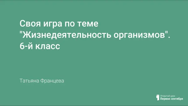 Представлена презентация к игре в 6-м классе по типу "Своя игра". Тема: «Жизнедеятельность организмов».