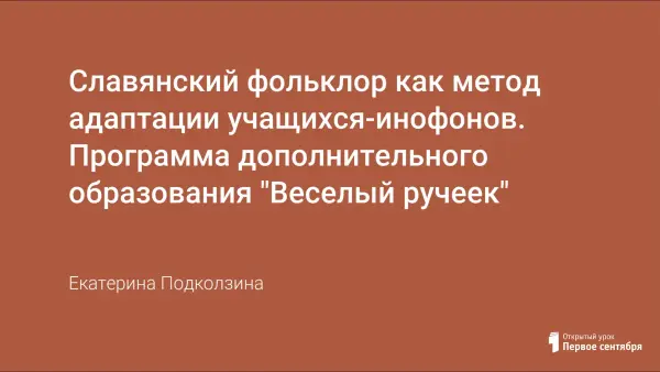 Целью данной программы является адаптация детей-инофонов в полиэтнической школе на основе этнопедагогики (русских народных игр, загадок, считалок). Основной формой проведения занятий является активная игровая деятельность.