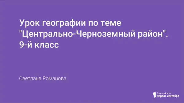 Цель урока: создание "образа" Центрально-Черноземного района; развитие практических умений работы с типовым планом, картами, самостоятельности, интереса к изучению природы России; воспитание патриотизма.