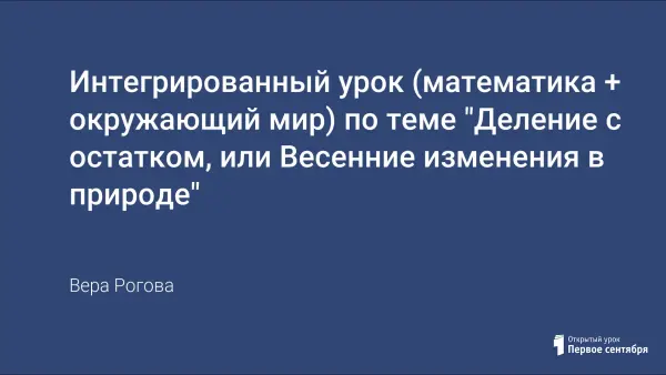 Интегрированный урок служит не только закреплению приема деления с остатком, совершенствованию вычислительных навыков, умению решать задачи изученных видов, навыков логического мышления, но и воспитанию интереса к математике, привитию любви к окружающему миру, природе, обобщению знания детей о весенних изменениях в природе.