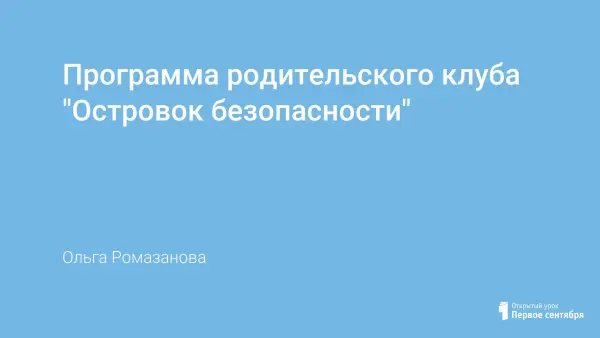 Проблему, связанную с безопасностью ребенка, невозможно решить только в рамках детского сада. Поэтому важно обеспечить преемственность в вопросах воспитания поведения детей между детским садом и семьей. Программа родительского клуба служит объединению совместных усилий педагогов и родителей в формирований у детей навыков безопасного поведения.