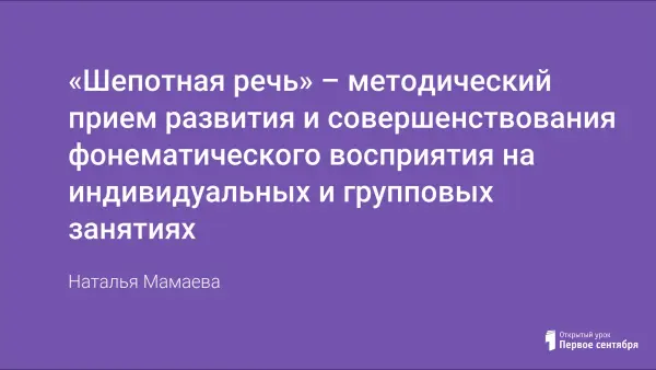 «Шепотная речь» – методический прием развития и совершенствования фонематического восприятия на индивидуальных и групповых занятиях