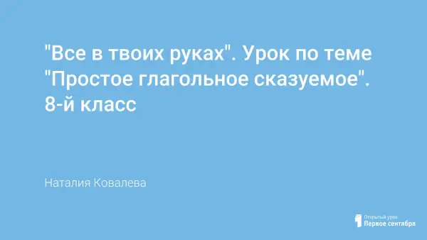 Цель урока: дать понятие простого глагольного сказуемого, активизировать творческие способности, воспитывать ответственность за происходящее, формировать готовность к осознанному выбору. Урок состоит из двух уровней: познавательного (новый материал – простое глагольное сказуемое) и воспитательного (беседа через весь урок «Все в твоих руках»).