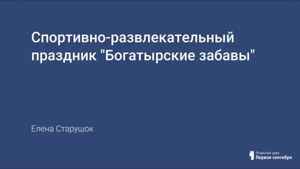 Материал предназначен для спортивно-массовой и внеклассной работы и соответствует задачам воспитания, образования и развития, а также условиям, отвечающим успешному осуществлению педагогического процесса. Разнообразие двигательных и умственных действий в «Богатырских забавах» содействуют нормальному гармоническому развитию учащихся, соответствует образу жизни людей, их психологическому складу, уровню культуры, традициям, умениям и навыкам, физическим качествам.