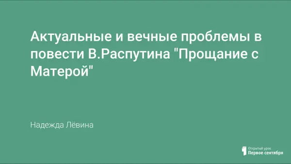 Проблемы, поднятые В.Распутиным в повести «Прощание с Матерой», по праву можно назвать вечными и актуальными. Он тревожится не только за судьбу сибирской деревни, но и страны, народа, беспокоится об утрате нравственных ценностей, традиций, памяти. Несмотря на трагический финал повести, нравственная победа остается за людьми ответственными, несущими добро, хранящими память и поддерживающими огонь жизни в любых условиях, при любых испытаниях.