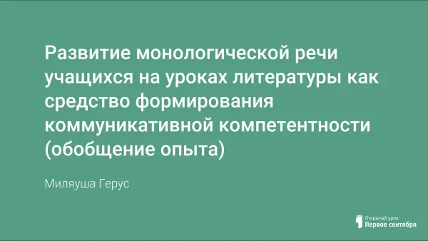 Проблема развития устной речи школьников приобретает все большее общественное значение, так как речь является убедительным показателем духовной культуры личности. Развивать устную речь учащихся - значит способствовать тому, чтобы она была более точной, выразительной и образной. Основная цель учителя-словесника - научить школьника монологической речи, мотивируя его на активное речевое осмысление текста через проблемное обучение.