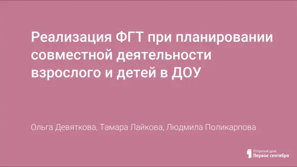 Реализация ФГТ при планировании совместной деятельности взрослого и детей в ДОУ
