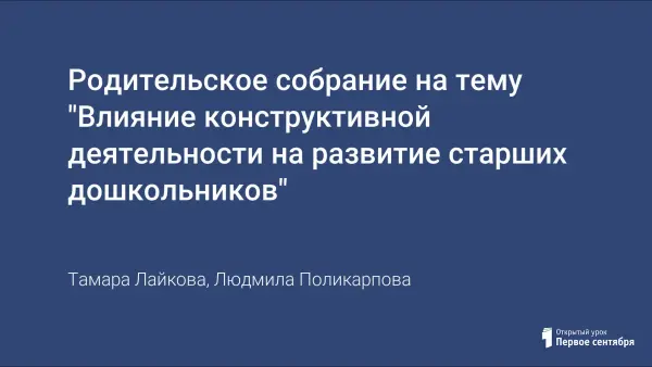Родительское собрание на тему "Влияние конструктивной деятельности на развитие старших дошкольников"