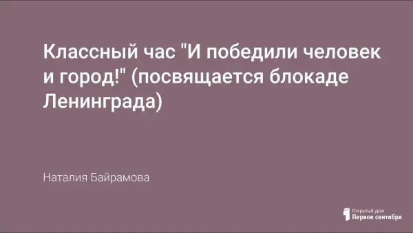 Классный час "И победили человек и город!" (посвящается блокаде Ленинграда)