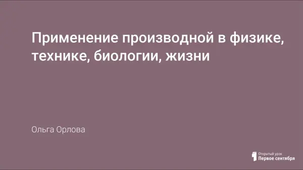 На уроке изучаются некоторые аспекты применения производной в различных областях физики, химии, биологии. Урок расширяет кругозор учащихся, активизирует познавательную деятельность, формирует умения применять свои знания.