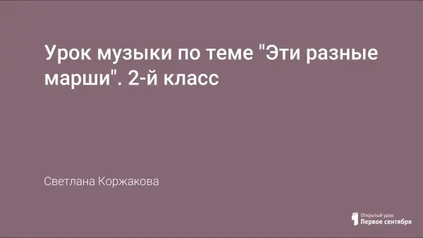 Урок направлен на формирование умения воспринимать музыку разных жанров. Учащиеся различают виды и интонационно-образные особенности маршевой музыки. Развиваются вокально-хоровые навыки, необходимые для выразительного исполнения песни, ритмического чувства и творческих способностей учащихся.