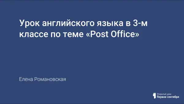 Урок по теме "Post Office" является одним из уроков в 3-м классе по разделу "Speaking about a new friend" УМК М.З. Биболетовой "Enjoy English" и знакомит учащихся с новой темой. Тип урока КРУ с введением нового лексического материала. В ходе урока учащиеся работают в парах и группах, делятся впечатлениями (мини-статьи), имеют возможность проверить себя на этапе закрепления при работе с интерактивной доской, соревнуются в решении кроссворда и т.д.