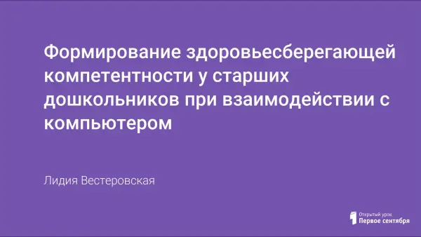Формирование здоровьесберегающей компетентности у старших дошкольников при взаимодействии с компьютером