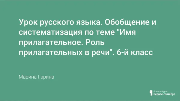 Цель урока: выполнение элементов лингвистического анализа; нахождение в тексте имен прилагательных, определение их разряда, морфологический разбор прилагательных, определение их синтаксической роли и роли в тексте; сочинение-миниатюра. Для достижения результата важен эмоциональный настрой учителя и учеников. Музыкальное сопровождение создает особую атмосферу приподнятости настроения, ощущения сопричастности к событиям.