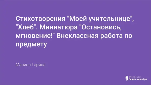 Автор в стихотворениях старалась выразить любовь и уважение к своему учителю литературы. В миниатюре показывается эпизод обычной жизни, но каким интересным и гармоничным он может быть.