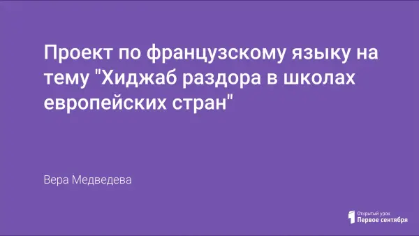 Целью проекта является исследование обучающимися проблемы неприятия странами Европы со стороны христиан такого атрибута одежды мусульманок в школах, как хиджаб. Исследование проекта проводится для расширения кругозора учащихся путем изучения различных межнациональных традиций и культур, для развития личности школьника, способного участвовать в межкультурной коммуникации на изучаемом языке и самостоятельного совершенствования навыков общения в иноязычной речевой деятельности.