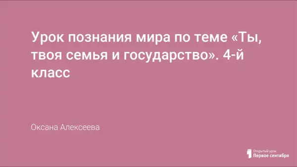 На уроке учащиеся знакомятся с понятиями «Конвенция о правах ребенка», «ООН – Организация Объединенных Наций», «Права ребенка»; закрепляют понятия «семья», «общество», «государство». На уроке используется интерактивный прием. Игра «Домино» развивает мышление. Цель: воспитание уважения к семье как основе общества, чувства гордости, любви к своей семье, уважения к государству.