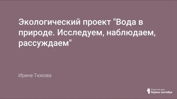 Цель урока: систематизация элементарных знаний и представлений о воде как объекте неживой природы. Также выявляется отношение родителей к вопросам экологического образования и воспитания их детей, с целью привлечь их к непосредственному участию в исследовательской деятельности.