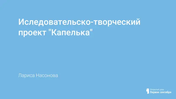 Цель проекта: знакомство младших дошкольников со значением воды. Проводятся опыты с водой. У детей формируется представление о необходимости заботиться о своем здоровье.