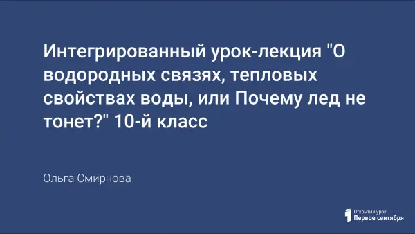 Интегрированный урок-лекция "О водородных связях, тепловых свойствах воды, или Почему лед не тонет?" 10-й класс