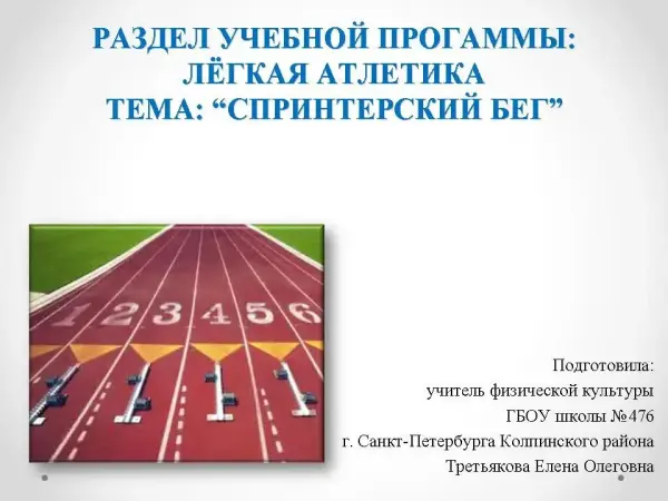 Легкоатлетические упражнения входят в программы физического воспитания школьников. Основная форма занятия легкой атлетикой ‒ урок физической культуры, который состоит из трех частей. Для того чтобы был выполнен норматив по лёгкой атлетике, необходимо знать и уметь выполнять легкоатлетические упражнения. Презентация в доступной форме представляет просмотр основных фаз техники бега на короткие дистанции.