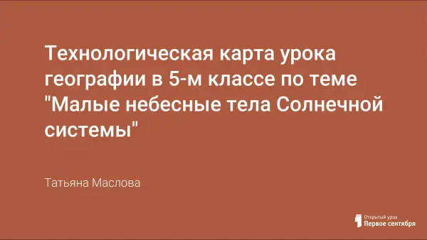 Технологическая карта урока географии в 5-м классе по теме "Малые небесные тела Солнечной системы"