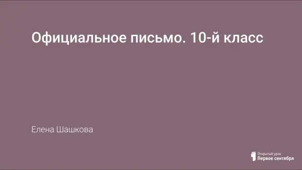 Цель урока: обобщение и систематизация умений и навыков учащихся в письменной речи. На уроке проводится сопоставительный анализ двух стилей письма: личного и официального. Уделяется особое внимание официальному письму о приеме на работу, правильному оформлению и составлению резюме. Примеры различных писем представлены в презентации к уроку.