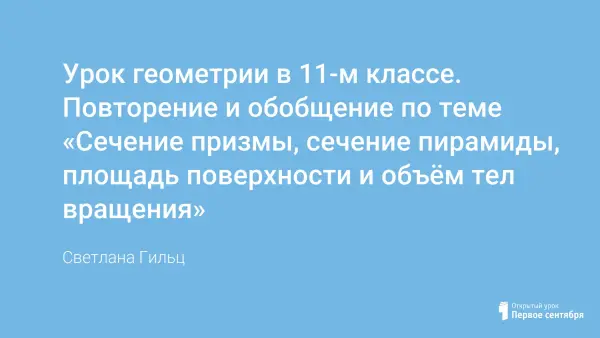 В разработке двухчасового урока рассмотрены способы построения сечений призм и пирамид, рассмотрены решения стереометрических задач второй части профильного экзамена по математике на построение сечений, вычисление периметров и площадей построенных сечений, нахождения площади поверхности и объёмов тел вращения.