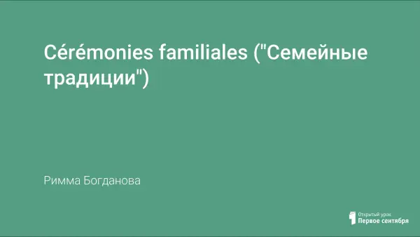 В работе «Cérémonies familiales» рассказывается на французском языке о семейных традициях: свадьба, крещенье, день рождения. Задания по тексту и диалогу помогут сравнить разницу в проведении семейных праздников во Франции и в России. Учеников можно попросить подобрать соответствующий материал по теме и выступить с сообщениями или презентациями. После просмотра обсудить.