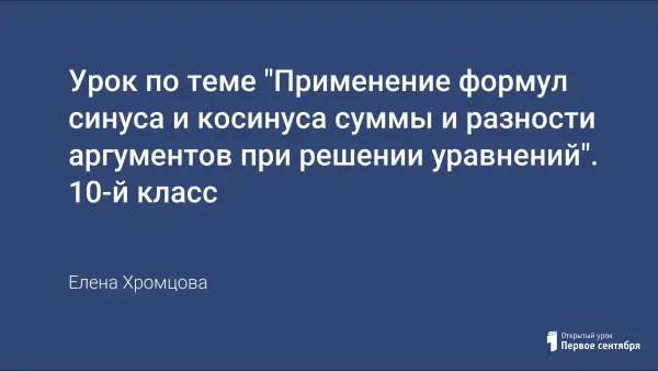 Целью урока является систематизация знаний учащихся при изучении формул синуса и косинуса суммы и разности аргументов, а также совершенствование навыков при решении тригонометрических уравнений. Эта цель достигается тщательным подбором заданий.