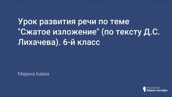 Урок развития речи по теме "Сжатое изложение" (по тексту Д.С. Лихачева). 6-й класс