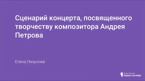 Тема концерта, посвященного творчеству композитора Андрея Петрова выбрана потому, что курс музыкальной литературы охватывает в основном произведения классиков, а для «легкой» музыки остается лишь несколько уроков в конце всего курса обучения. Музыкальные иллюстрации в концерте исполняют как учащиеся старших классов, так и младших всех отделений школы (фортепианное, народное, вокальное), что помогает объединению школы, как и любое другое совместное мероприятие.