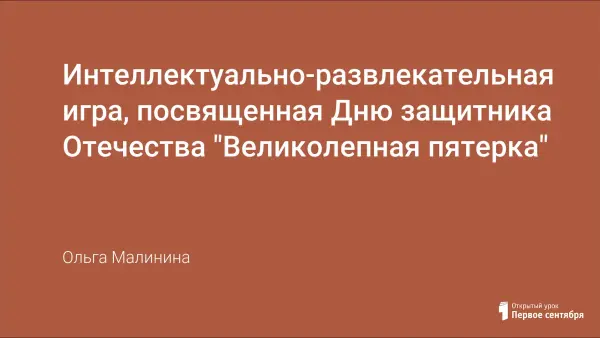 Интеллектуально-развлекательная игра, посвященная Дню защитника Отечества "Великолепная пятерка"