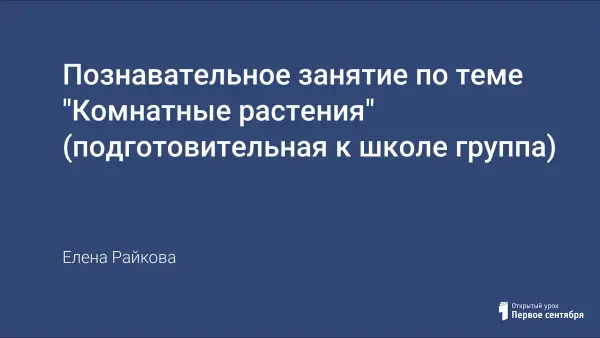 Познавательное занятие в подготовительной группе учит детей различать комнатные растения по их характерным признакам, ухаживать за растениями, учитывая их место произрастания, климатическую зону, особенности внешнего вида, знакомит с болезнями комнатных растений. Дети развивают речь, сочиняя сказку о комнатных растениях, в которой отражают внешний вид и особенности ухода.
