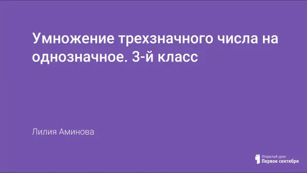 На уроке закрепляются вычислительные навыки детей умножения трёхзначного числа на однозначное.