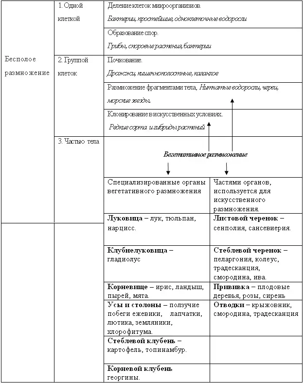 Цель: изучить размножение, его виды; изучить бесполое размножение; изучить вегетативное размножение растений.