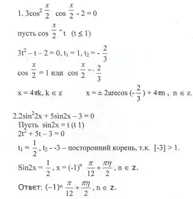 2. Решение тригонометрических уравнений, содержащих одну и ту же функцию одного и того же аргумента, методом подстановки. Подобрать два-три уравнения.